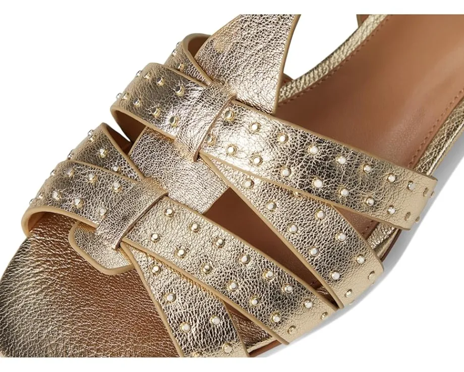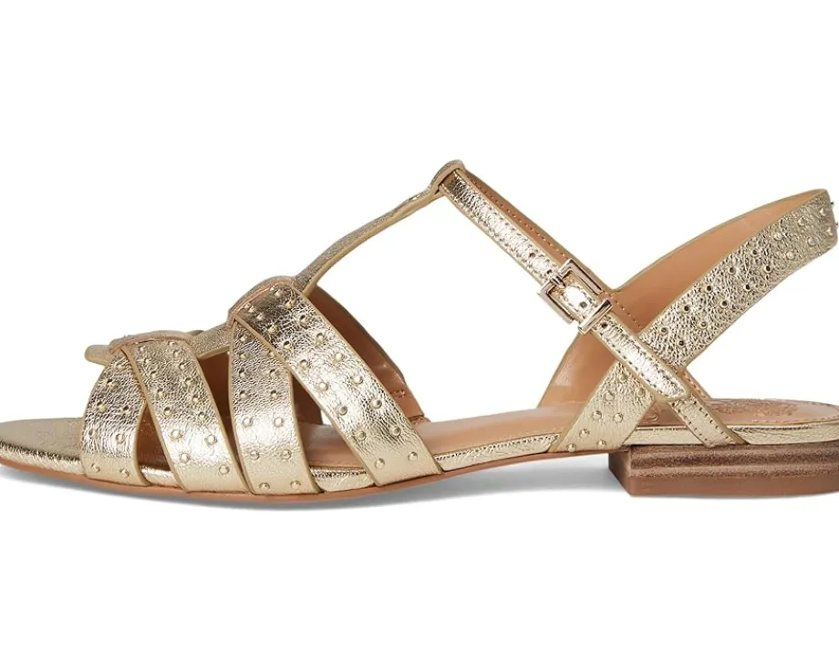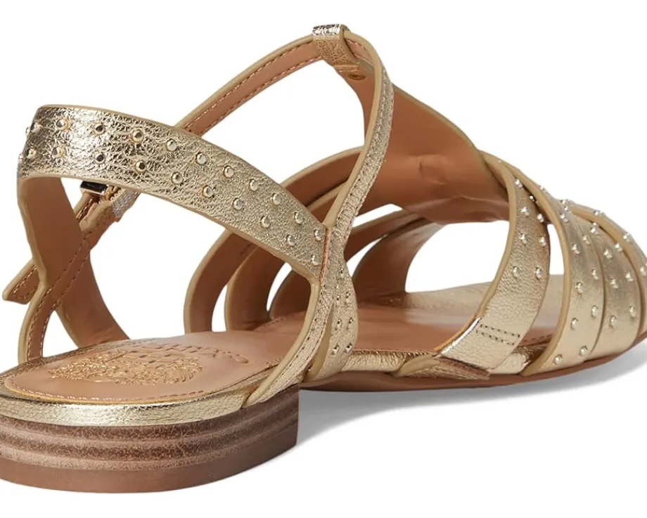 - Add a feminine touch to your look with the Vince Camuto® Chaya Studded Gladiator Flat Sandals. The pair is delicately detailed with pinhead studs for a subtle yet stylish flair. The slingback strap and buckle closure on the instep strap ensure a secure fit, while the stacked block heel gives you the perfect amount of lift without sacrificing comfort. Featuring a rounded toe and a padded sock, this sandal is flirty, versatile, and perfect for all ages.