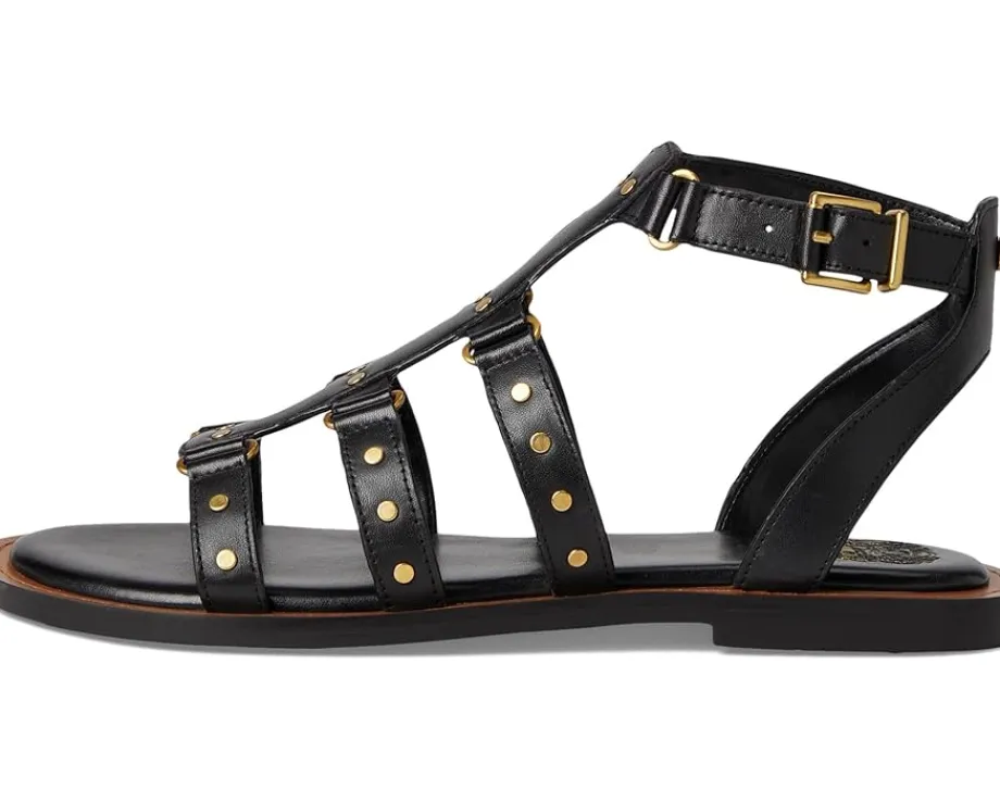- Styled with a strappy design with metal rivets, the Vince Camuto® Claira Gladiator Flat Sandals are perfect to pair with different outfits and styles. The leather upper features an ankle strap with an adjustable buckle closure and a zippered back closure for easy wear. These flat sandals are made of a padded footbed and synthetic lining.