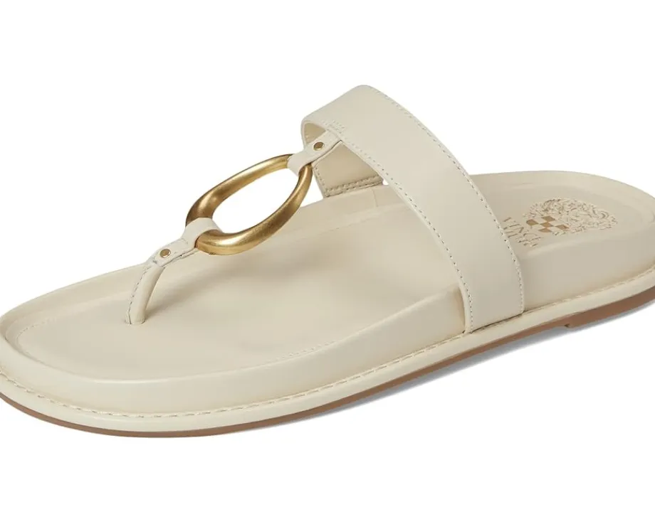 - Elevate your style with the Vince Camuto® Genri O-Ring Thong Slide Sandals, featuring sculpted hardware for a touch of luxe. The contoured footbed molds to your foot, offering superior comfort with every step. A durable rubber outsole ensures traction.