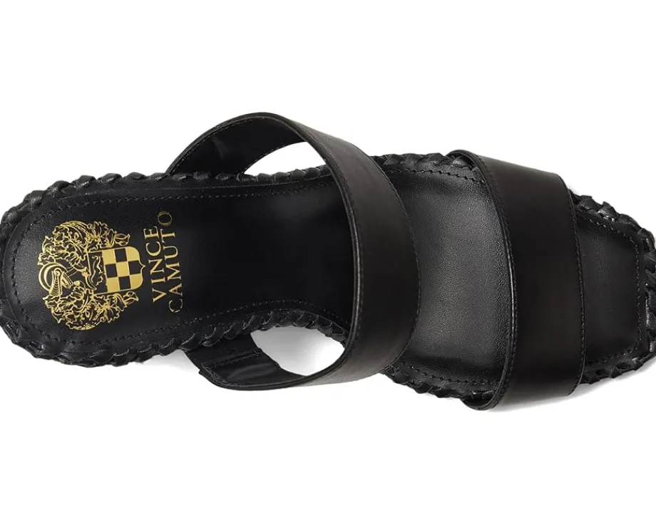 - The point where classic and contemporary collide: Vince Camuto® Kaden Stitched Block Heel Mule Sandals. Designed for all-day wear, these slip-on mules feature a luxe leather upper with intricate stitching that adds a touch of artisanal charm. The breathable mesh lining keeps you cool, while the cushioned footbed ensures cloud-like comfort with every step. A sturdy block heel provides the perfect lift, balancing style and stability, while the open round toe enhances breathability and showcases your pedicure. Finished with a durable rubber sole for traction, these sandals seamlessly transition from day to night.