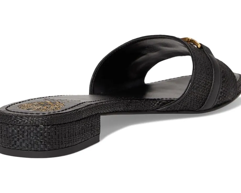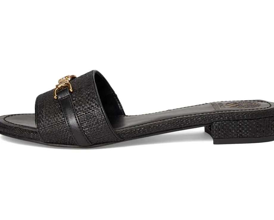 - Walk your way with absolute confidence wearing Vince Camuto® Maxine Banded Buckle Slide Sandals. The open round-toe sandals are crafted with a leather upper, polyurethane lining, and a padded footbed. The slip-on fit allows easy on/off and the metal detailing with block heel adds a stylish detail to the aesthetics.