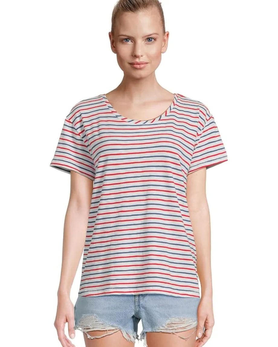 - Slip into effortless comfort with this vineyard vines® Slub Jersey Relaxed Tee featuring a soft slub jersey fabric, scoop neckline, and short sleeves. The colorful vertical stripes add a playful pop, perfect for laid-back days with a cheerful vibe.