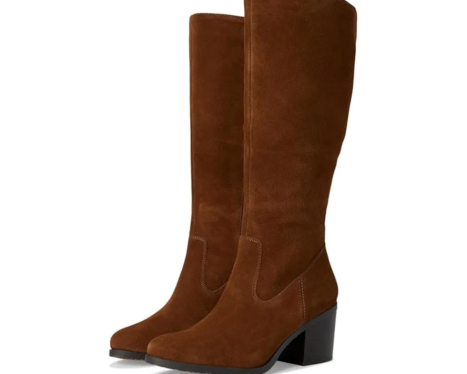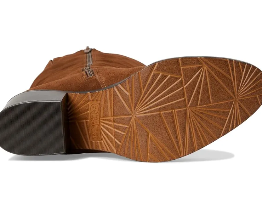 - Own the trail, own your style donning White Mountain® Tater tall shaft boot. Crafted with a sleek leather upper and lined with soft fabric, this knee-high boot exudes sophistication. The almond toe design and wide calf fit ensure a flattering silhouette for all, while the low block heel offers stability and all-day wearability. Slip into the cushioned foam insole for superior comfort, and enjoy the ease of a full inside zipper for quick entry. With a durable PU outsole, the Tater boot is your go-to for chic, effortless elegance on any occasion.