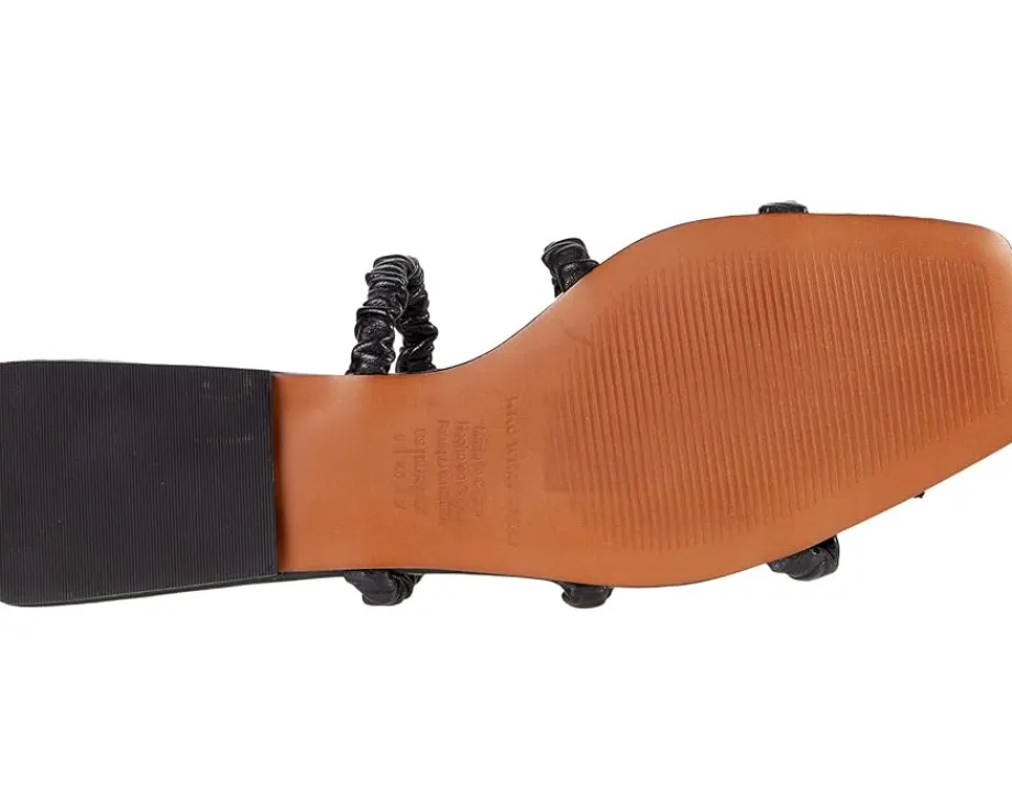 - Three leather straps with ruched detail.