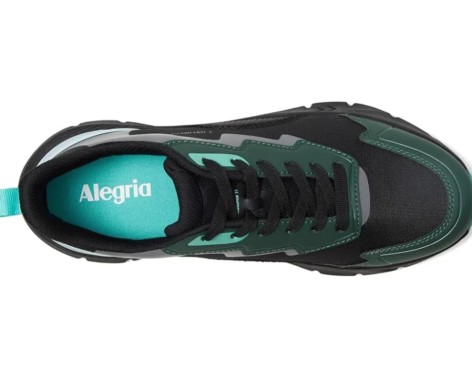 - Make a statement with every step wearing the Alegria® Exhault. Crafted from leather upper, knit lining and leather insole, this pair of tech-driven athletic style shoes features round toe, adjustable laces, built-in arch support and protective mudguard inside and heel pull tab. It comes with a removable contoured footbed made of memory foam and cork for comfort.