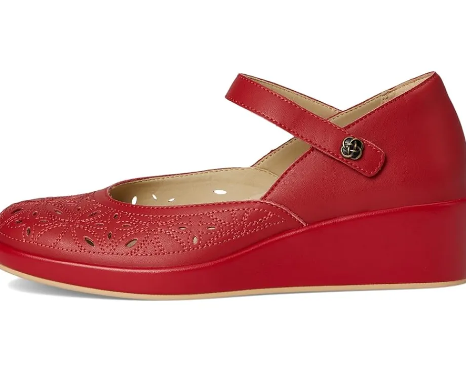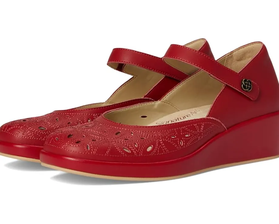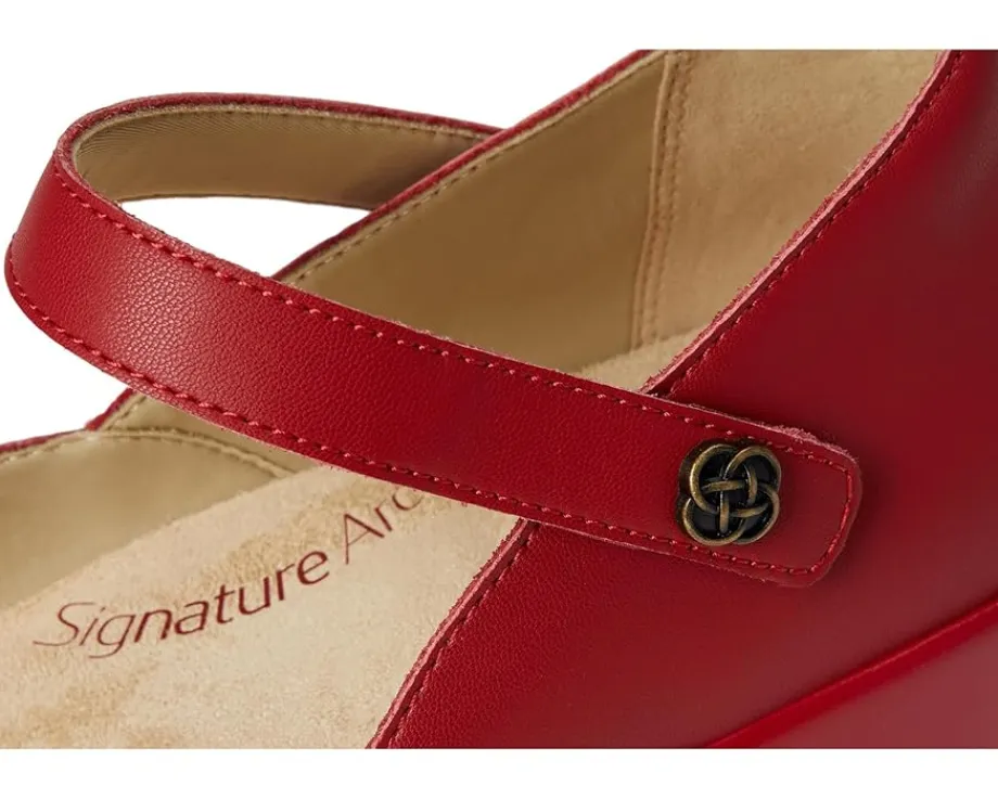 - The Alegria® Hayes elevates your modern look. Featuring premium leather uppers and an adjustable strap with a decorative button closure, this shoe ensures a secure and custom fit. Built on the advanced Tri-Form wedge outsole from Alegria, the Hayes delivers exceptional support, stability, and shock absorption for all-day comfort. The removable dual-density Signature Arch footbed promotes foot health, making this versatile style perfect for work or casual outings. Featuring adjustable strap with decorative button closure, and protective heel cup for added stability.