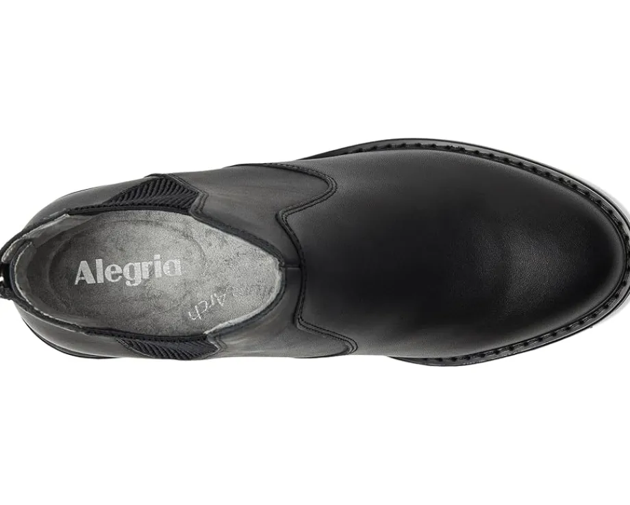 - Experience Alegria comfort redefined wearing Alegria® Meadow-your go-to Chelsea boot that effortlessly combines fashion and function. With a sleek leather upper and ankle-high design, this boot offers a polished look and a touch of heel for added elegance. The stain-resistant leather ensures enduring style, while the zippered side closure and double elastic gores provide a snug, adjustable fit. Enjoy superior comfort with the removable microsuede Signature Arch™ footbed and stay steady on your feet with the slip-resistant polyurethane outsole.
