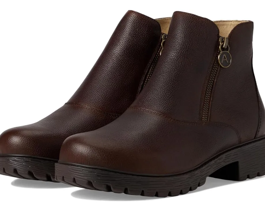 - Step boldly in the Alegria® Rorie ankle bootie set on a slip-resistant luxe lug outsole. It features double zippers for easy on-and-off. Inside, there’s a suede-lined removable footbed made of polyurethane, cork, and memory foam.
