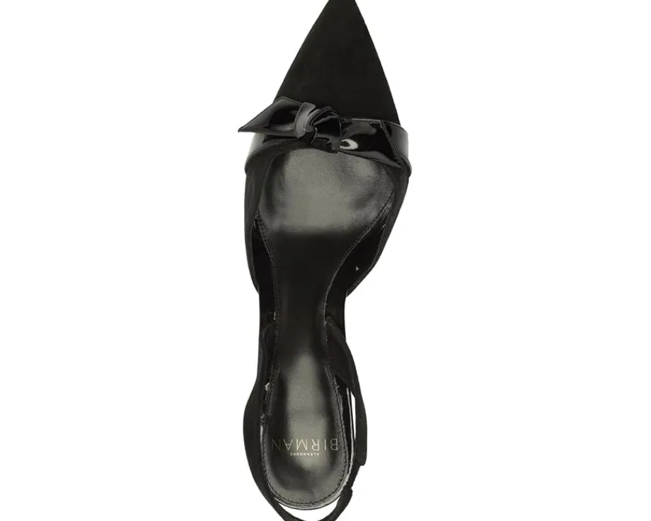 - Make a gorgeous statment by donning the sleek Alexandre Birman™ Clarita Slingback Stiletto Flare 85 heels adorned with a beautiful bow accent on the vamp and yet unique flared heels.