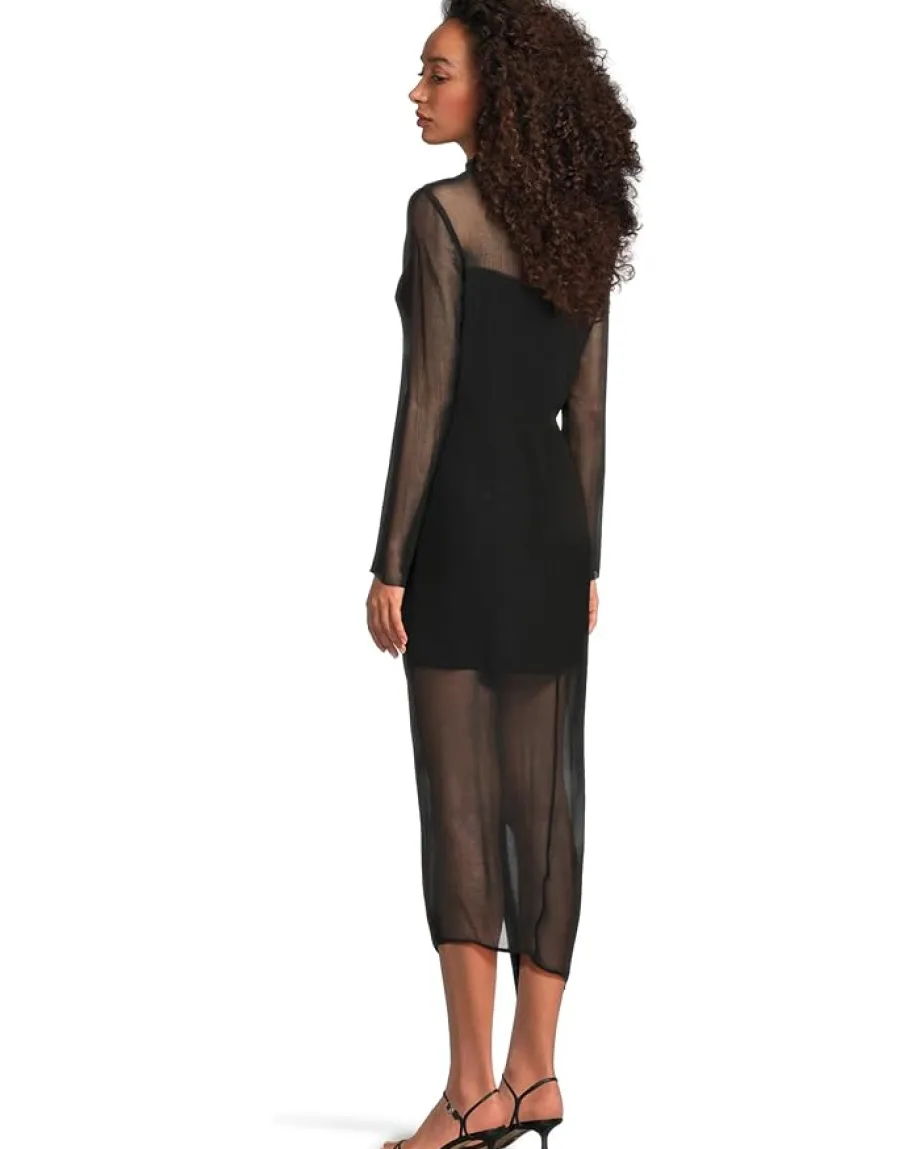- Style up your look and raise the glam quotient wearing AllSaints™ Rizo Dress. The dress features a mock neck, long sleeves, ruched detailing at the side waist with a tie-up detail at the leg, and a flattering below-the-knee silhouette. The allover printed details elevate the style.