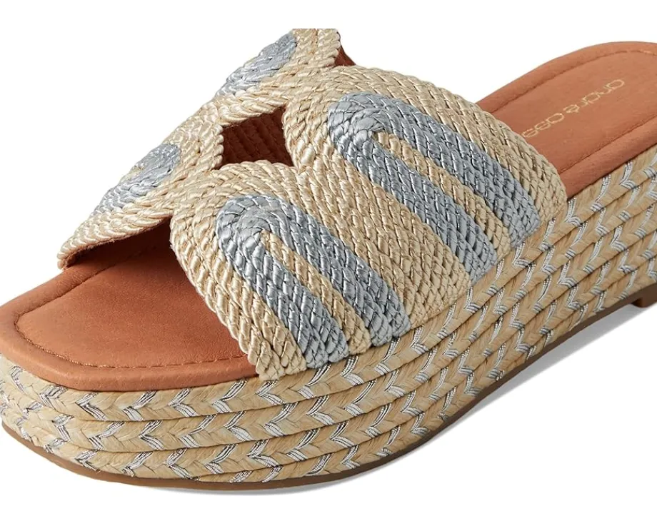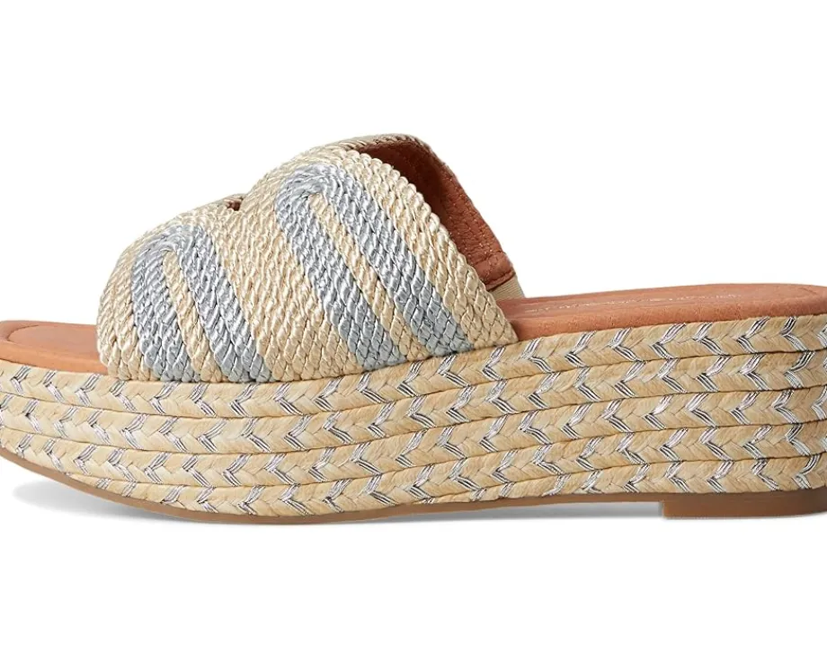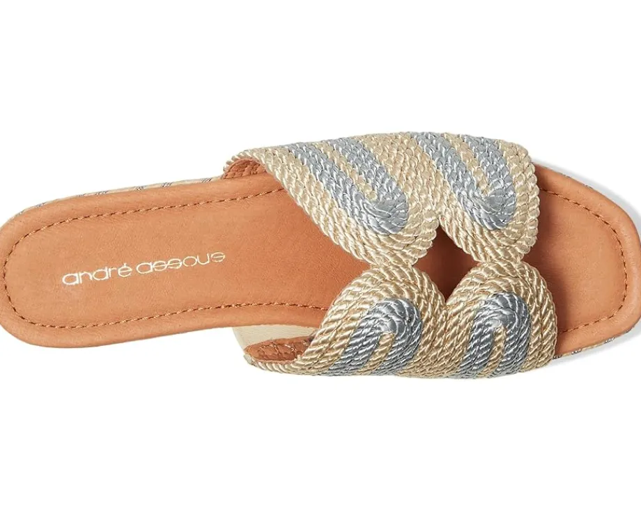 - Elevate your summer wardrobe with the Andre Assous™ Serene. Crafted from raffia upper, synthetic lining, and leather-covered foam footbed, this pair of sandals features open round toe, slip-on style, wedge heel, and woven strap design.