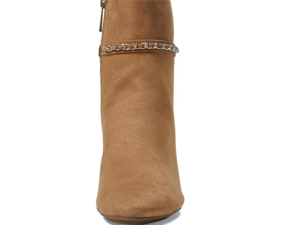 - Burst onto the fashion scene wearing the stylish Anne Klein® Suri. Crafted from man-made upper, this pair of boots features pointed toe, block heel, zippered side closure, and chain detailing on the ankle for an attractive look.