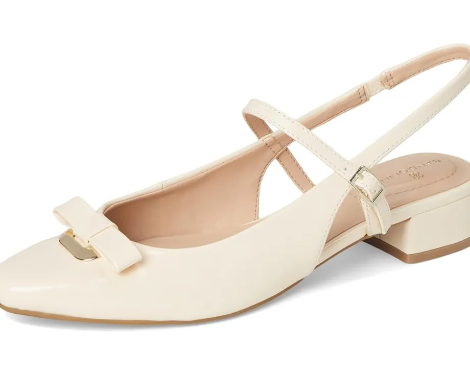 - The Bandolino® Adana adds instant style to any outfit. Featuring bow detailing on the upper, slingback strap and a low block heel. The Adana is the perfect wardrobe staple! Established in 1960, Bandolino is a mix of timeless design and uncompromising quality.