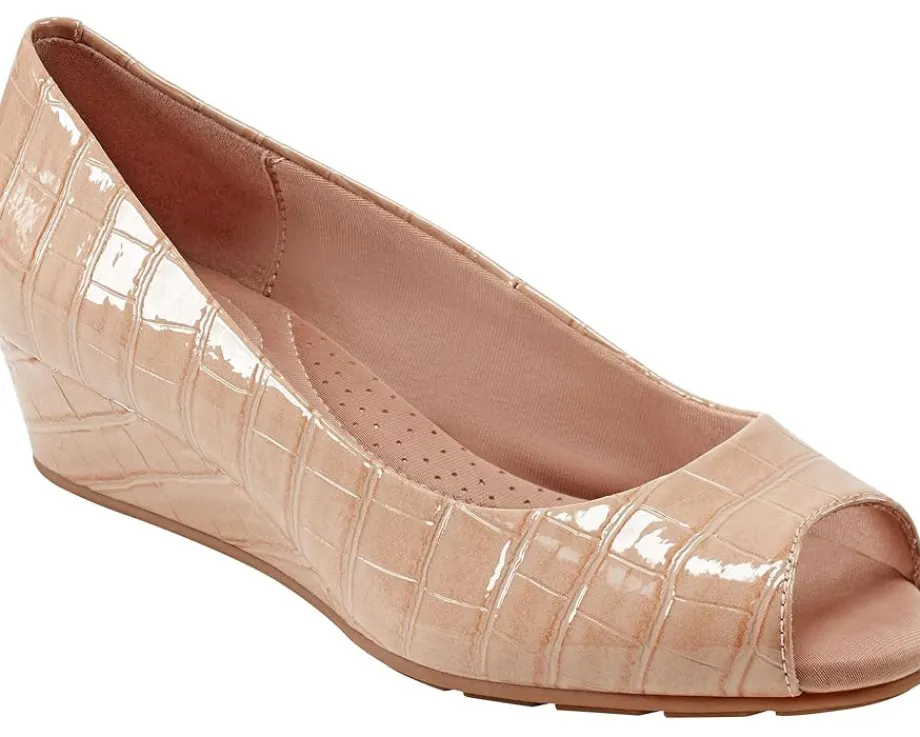 - The Bandolino® Candra peep-toe pump will ensure that you make your mark this season with a slip-on design and wrapped wedge heel.