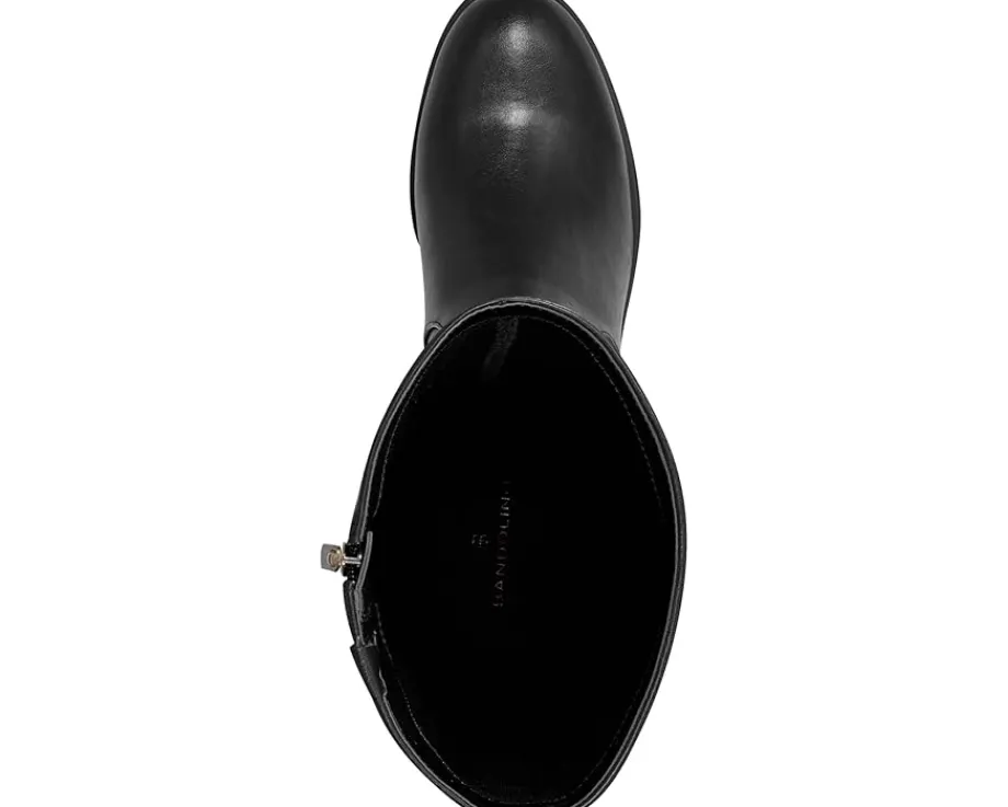 - Add a hint of charming flair to your ensemble wearing the Bandolino® Dennie riding boots. This knee-high footwear has eye-catching hardware at the sleek ankle strap and a cushioned footbed for all-day comfort. The synthetic upper is accompanied by a block heel and side zipper for easy entry.