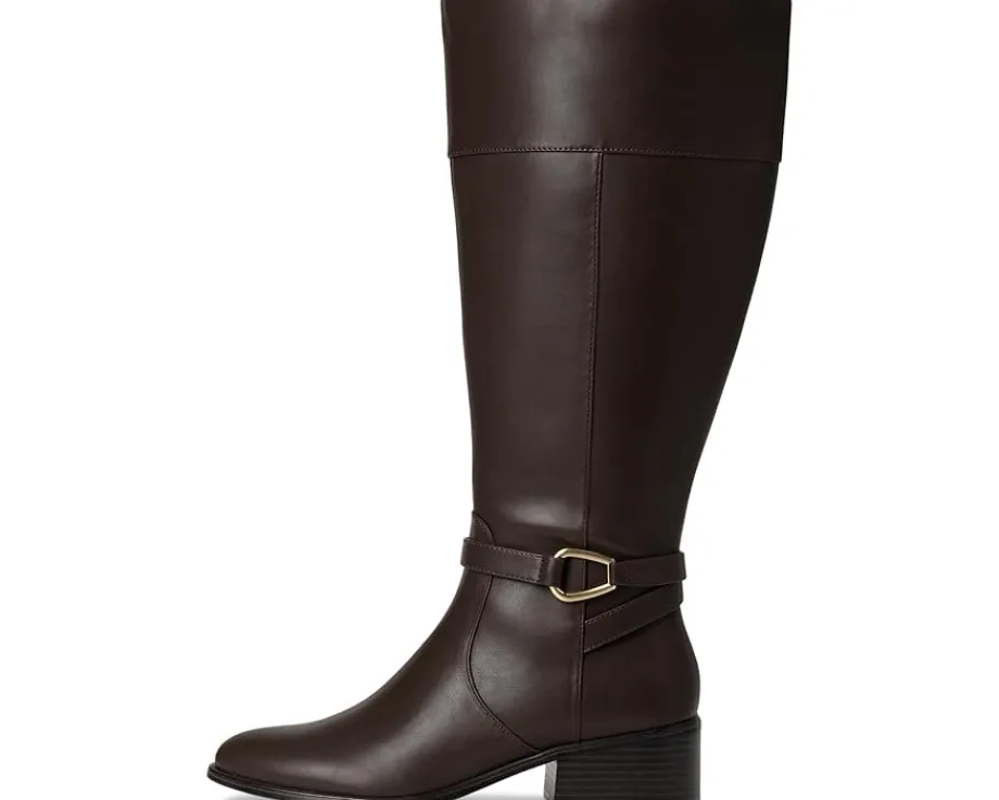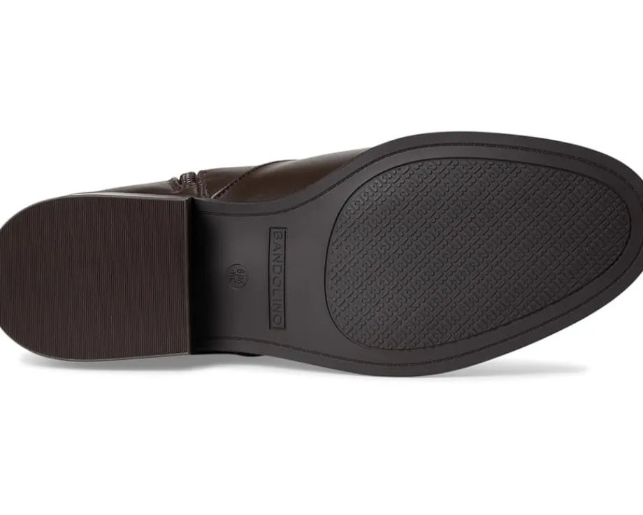 - Add a hint of charming flair to your ensemble wearing the Bandolino® Dennie riding boots. This knee-high footwear has eye-catching hardware at the sleek ankle strap and a cushioned footbed for all-day comfort. The synthetic upper is accompanied by a block heel and side zipper for easy entry.