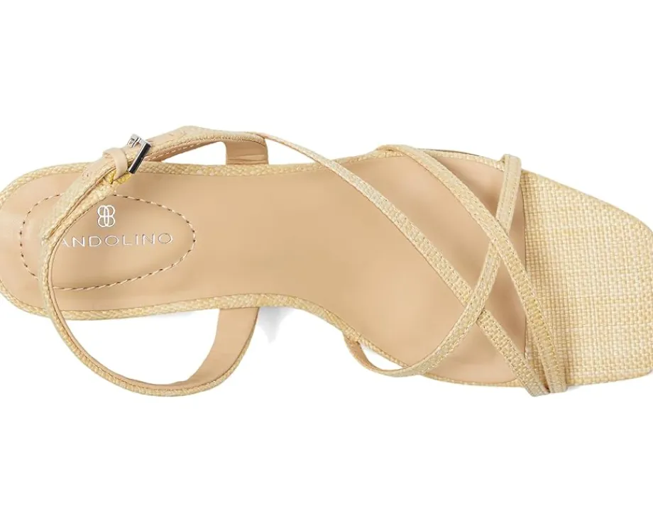 - The Bandolino® Keltie dress sandals are the must-have of the season. They feature a square-toe design, a strappy silhouette, and an adjustable ankle strap for a secure fit. These heeled sandals are made of a polyurethane upper, foam insole, and polyurethane lining. These strappy sandals are a mix of timeless design and uncompromising quality.