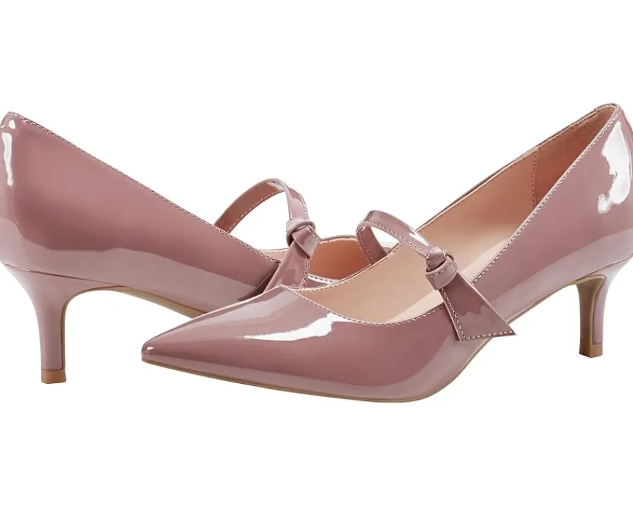 - Knotted bow accent on the midway strap simply adds to the modern yet sleek design of Bandolino® Medley Pumps. The pull-on footwear features polyurethane upper with kitten heel and low-top, pointed toe silhouette.