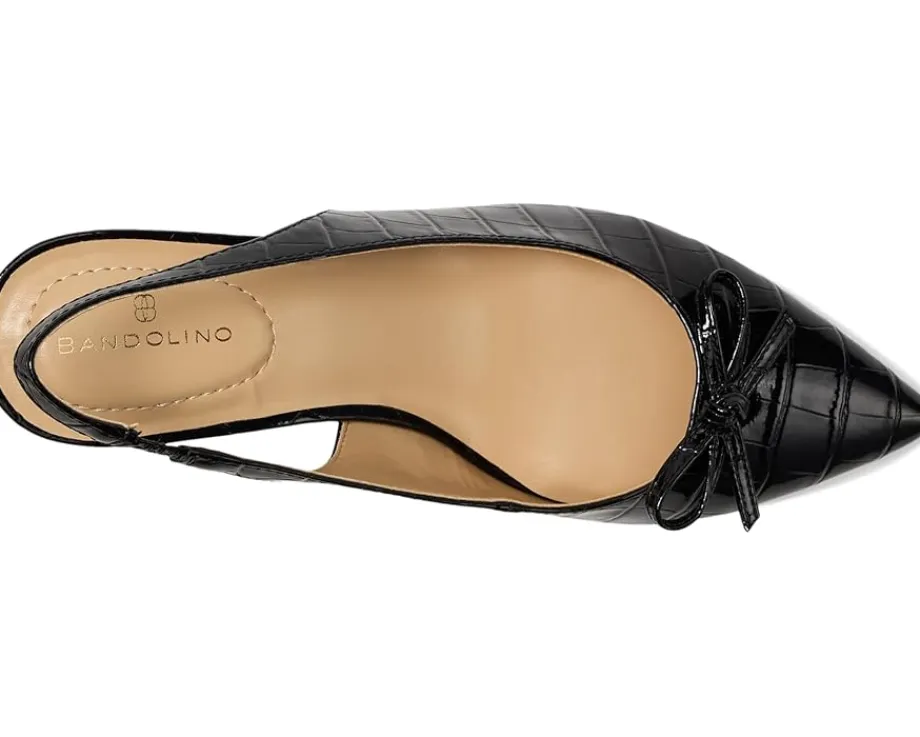 - The Bandolino® Shane slingback pumps are both feminine and sophisticated. Strike a pose in this beautiful classic slingback silhouette with a feminine bow detail. The polyurethane upper of these sandals features an adjustable buckle strap for a secure fit. These heeled pumps are crafted with a foam footbed and man-made lining that make them comfortable to wear for long hours. From getting ready for work to going out for a date, these heeled sandals are the perfect footwear choice.
