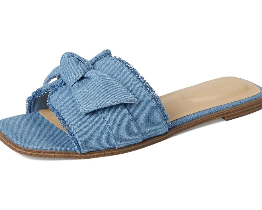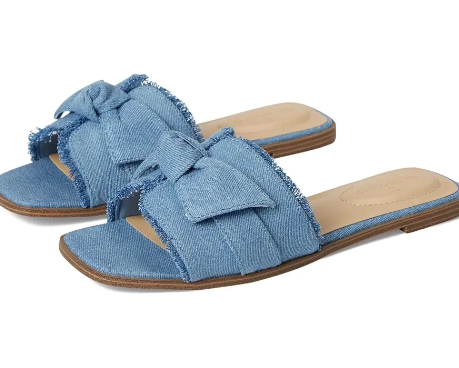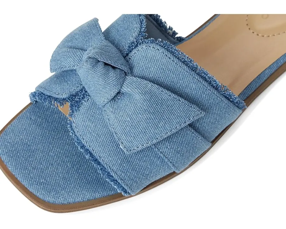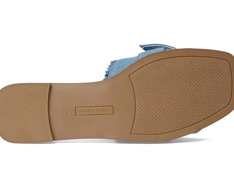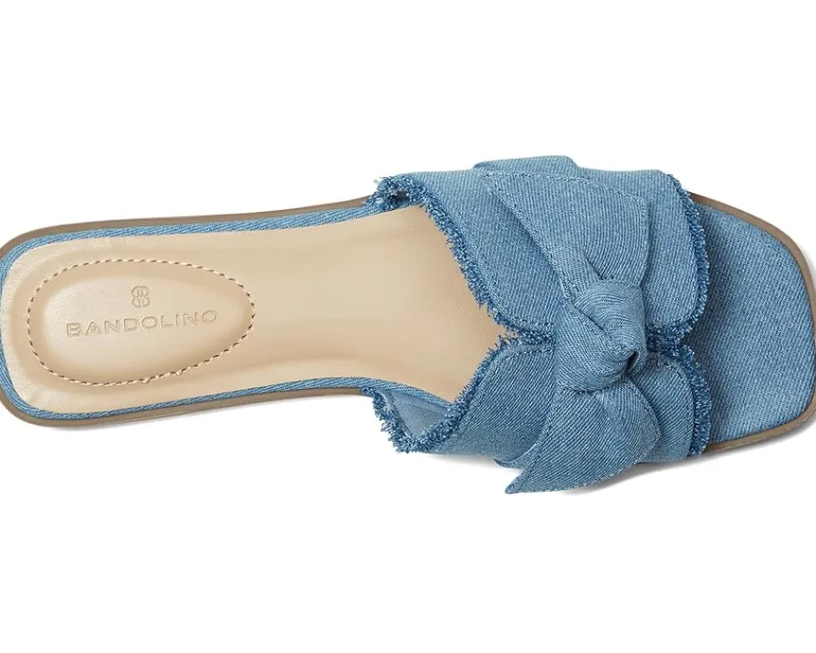 - The Bandolino® Vallen casual flats are your go-to style essential, blending modern flair with effortless wear. Crafted with a sleek PU upper and accented by an elegant bow detail, these sandals bring a feminine twist to any look. The open toe and contemporary square toe design elevate your everyday outfits with a trendy edge. Featuring a slip-on silhouette for easy wear, a soft polyester lining, and cushioned foam insole for all-day comfort, every step feels like a dream. The durable synthetic rubber outsole offers grip and flexibility wherever you go.