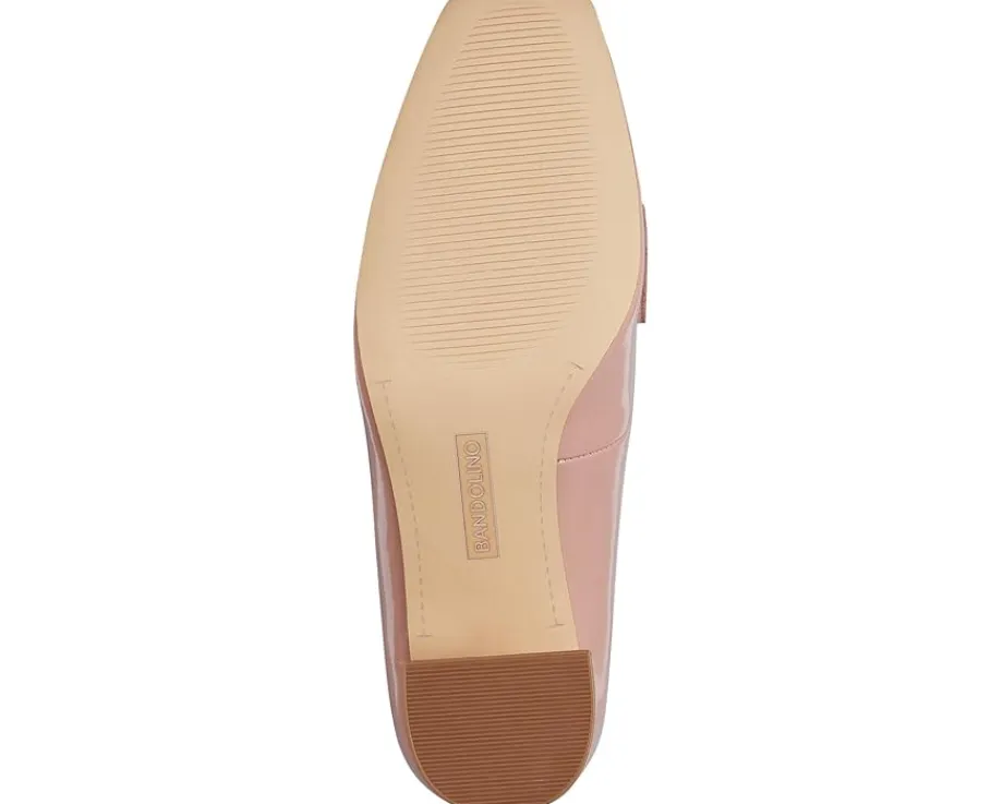 - The Bandolino® Lucien Heels are a classy addition to any casual or formal look and make you feel confident with every step you take. These come with a squared toe shape, golden hardware detailing, and a high block heel. The heels are made with a faux patent leather upper, man made lining, and foam footbed.