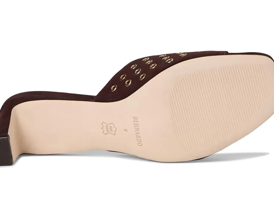 - Be bold. This open-toe Bernardo® Cenza Grommet mule with structural clean lines combined with the edginess of all over grommets makes for a powerful statement. Wear her on a date night or out with the girls. Crafted from leather upper, lining, and insole, this pair of sandals features open square toe, block heel, and brand detailing on the footbed.
