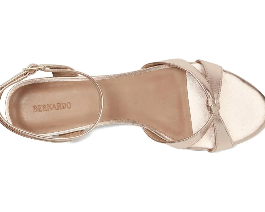- Learn from history. The Bernardo® Garcel sandals are designed with an iconic T-strap leather upper with modern block heels and a padded footbed for elevated, everyday style. These heeled sandals are made of a leather insole and lining. The adjustable ankle strap ensures a secure fit.
