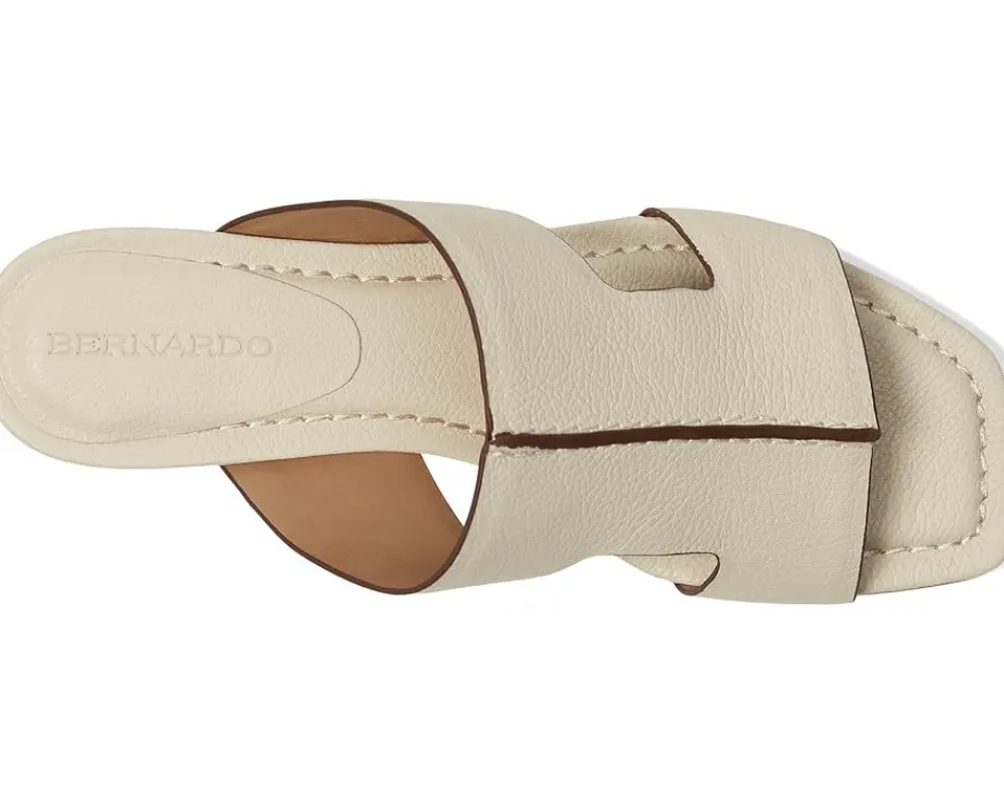 - Shape shift. The Bernardo® Jewel sandals take you anywhere with elegance by combining an architectural upper – handcrafted from supple, yet tactile leather – with modern stacked block heels and padded leather footbed. These heeled sandals feature a slip-on style for easy on and off. The leather lining and a single strap design add to their style and comfort. These leather heels are perfect to pair with different dresses and party outfits.
