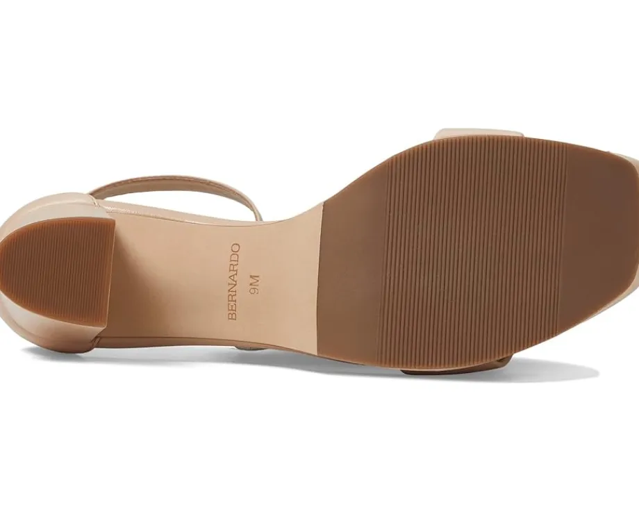 - Slay the party looks by donning the Bernardo® Carla sandals. Designed with a single strap on the upper, the stylish heels have a delicate ankle strap with buckle closure and an open, square-toe design.