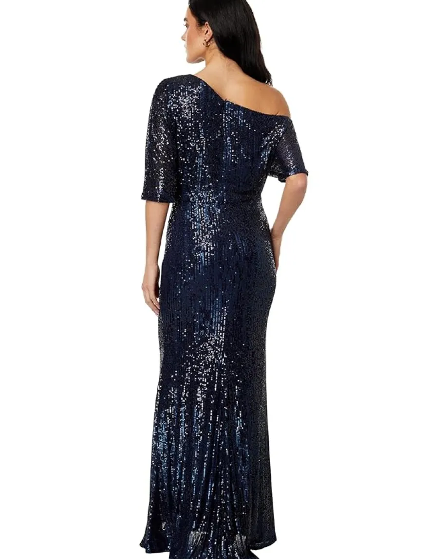- Become center of attraction in event gala by wearing Betsy & Adam™ Long 3/4 Sleeve Off-the-Shoulder Sequin Dress.