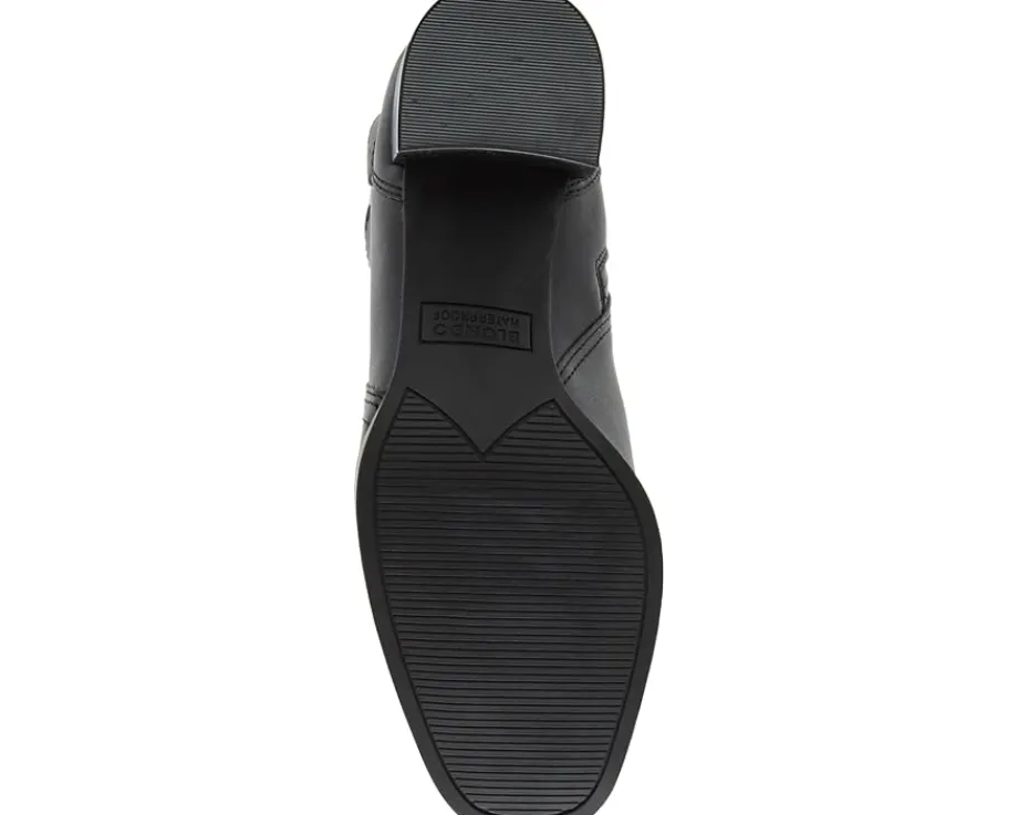 - Featuring a waterproof construction with sealed seams, the Blondo® Ginelle Waterproof boots keep your feet dry and comfy through rain or shine. The leather upper of these boots is styled with a rear pull loop and an adjustable buckle strap. These heeled boots are crafted with a lightly cushioned footbed and polyester lining that provides added comfort. The zippered side closure of these boots ensures easy on and off. Style up your looks and outfits wearing these leather boots.