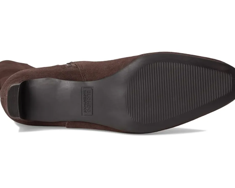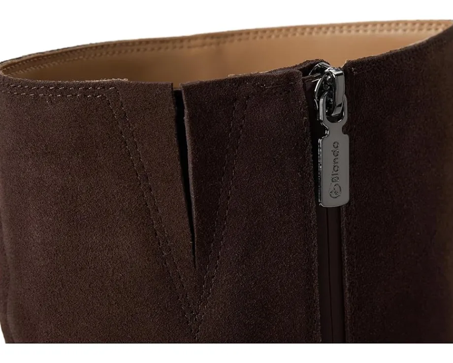 - Rain or shine, step out in unstoppable style wearing the Blondo® Stellah Waterproof Boot. Crafted with a luxe suede upper, lining, and insole, this knee-high beauty is designed to elevate your cold-weather wardrobe. The softly pointed toe adds a refined edge, while the blocky, subtly flared heel delivers enhanced stability without compromising on height or allure. A sleek zippered side closure ensures easy on-and-off, making these boots as practical as they are fashionable. Finished with a durable rubber outsole for sure-footed grip, the Stellah effortlessly pairs waterproof performance with runway-worthy elegance, perfect for conquering rainy city streets or crisp autumn strolls in impeccable style.