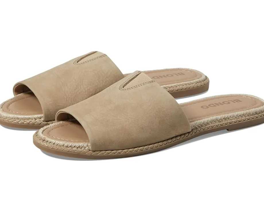 - Your look will speak about your unique fashion sense while donning the Blondo® Emilia Waterproof. These flat sandals feature open round toe design, brand detailing on the footbed, and slip-on construction. It has a leather upper and cushioned rubber insole.