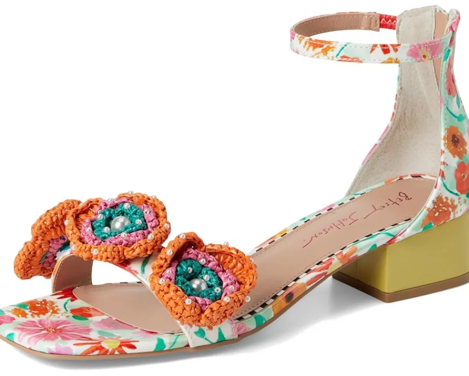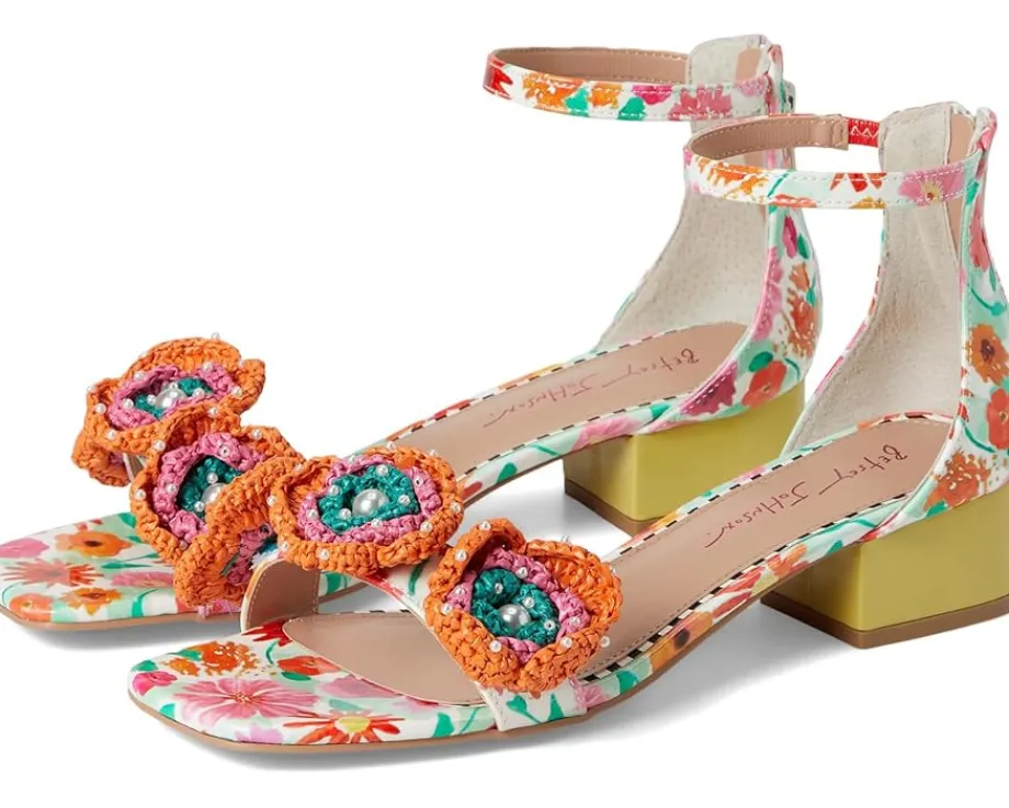 - Perfect for any fashionista, the Blue™ by Betsey Johnson Brandee heels are sweet and girly with their flower embellishments. The adjustable ankle strap ensures a perfect fit. These heeled sandals have a faux leather upper, insole, and lining.