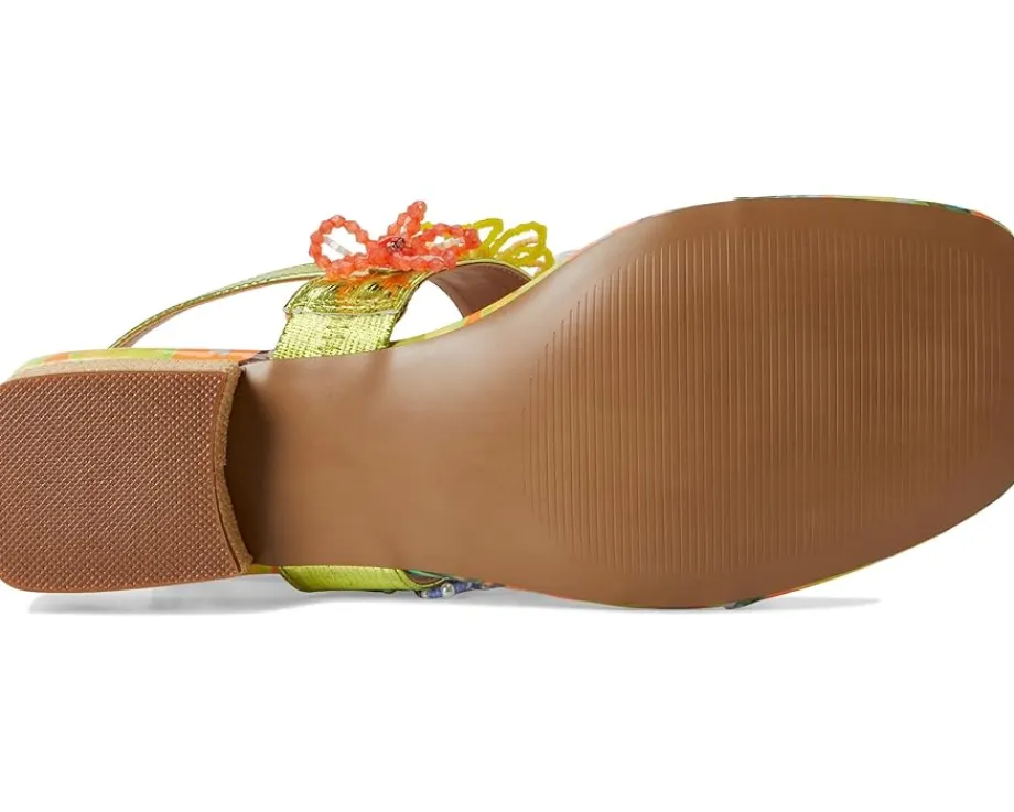 - The Blue™ by Betsey Johnson Jaydda sandals are girly and flirty with their colorful floral adornments. They are made of a faux leather insole and lining. The faux leather upper features an ankle strap with an adjustable buckle closure for a secure fit. These heeled sandals are a great choice to style up your party looks and chic styles.