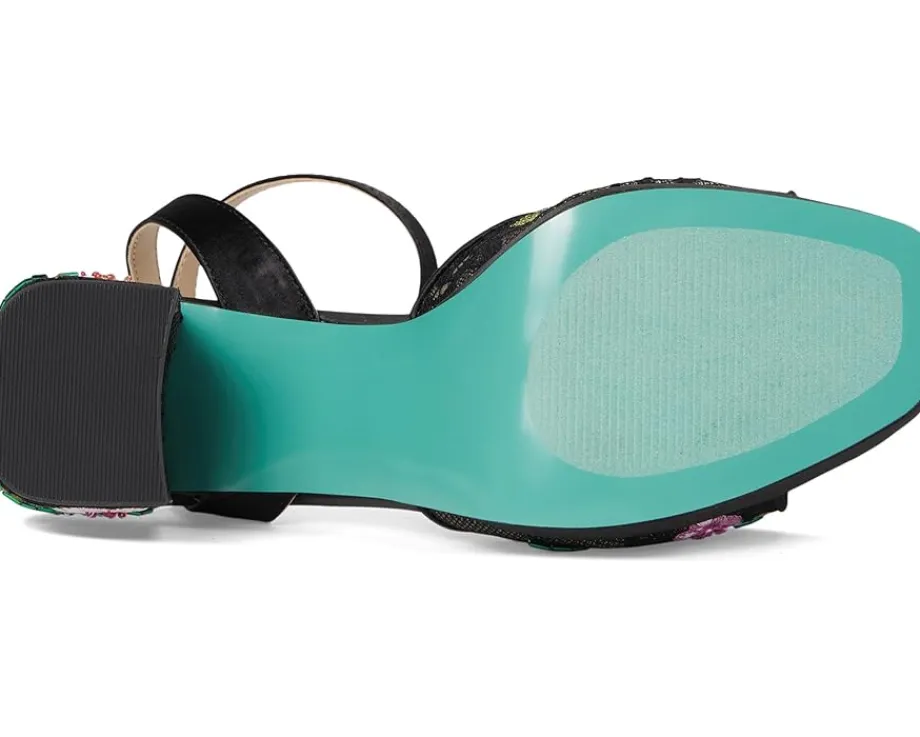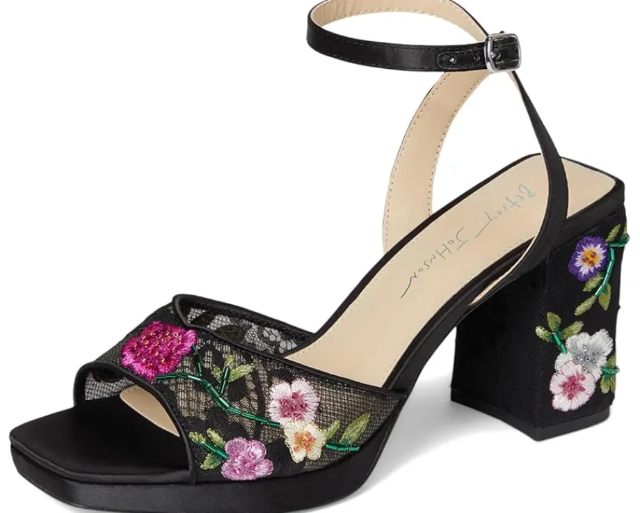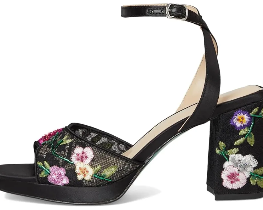 - Bold and romantic, the Blue™ by Betsey Johnson Kenni heels feature floral embroidery on a statement platform. These heeled sandals are designed with a faux leather upper, insole, and lining. The adjustable ankle strap ensures a secure fit. With a secure fit and cushioned comfort, these embroidered sandals are made to turn heads day or night.