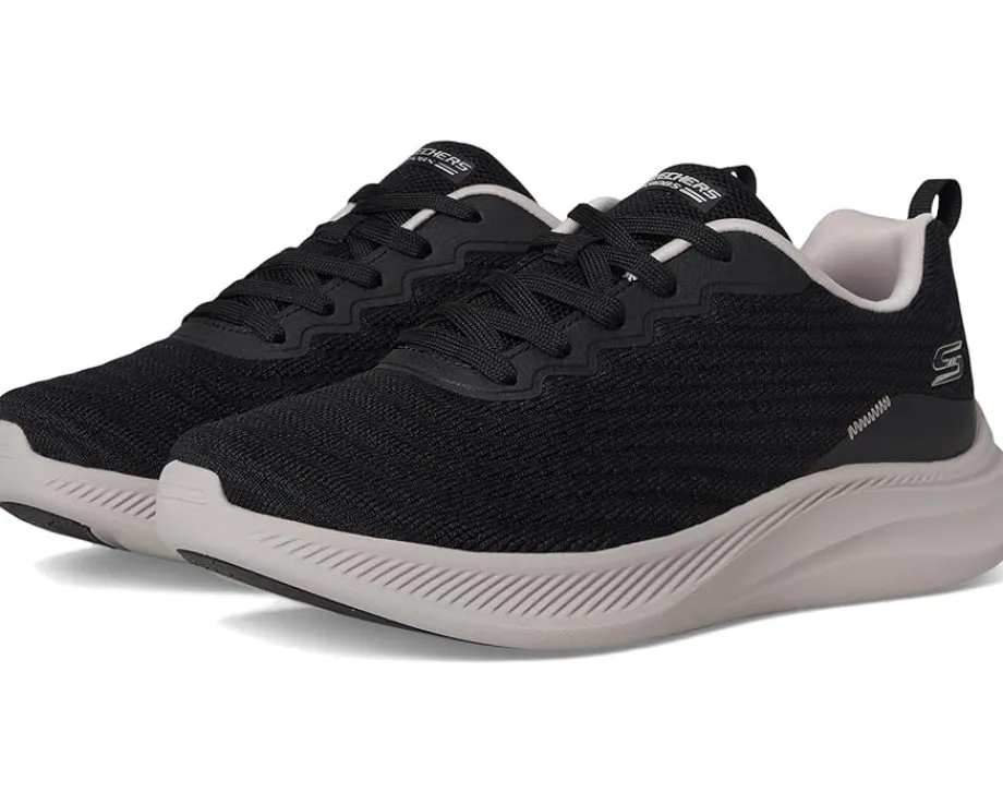 - Pair up with athletic style and comfort wearing the BOBS from SKECHERS® Bobs Moda Flex – Mellow Dawn shoes. These fashionable lace-up sneakers feature a textured fly knit mesh upper with a cushioned Skechers Memory Foam insole for all-day comfort. Made with 100% vegan materials, these low-top shoes are a must-have for your footwear collection.