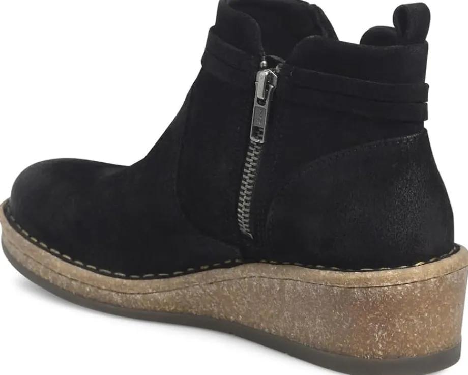 - The Born® Vaughn boots are designed to captivate with their unique details and provide a fashionable lift to your wardrobe. These boots feature Opanka hand-crafted construction that offers durability while the zippered side closure ensures easy on and off. The hand-finished distressed suede leather upper of these boots comes with a heel pull loop. These leather boots are crafted with a breathable soft fabric suede lining and soft fabric suede-covered footbed with extra foam for added comfort. Make a fashionable entry wherever you go wearing these zippered boots.