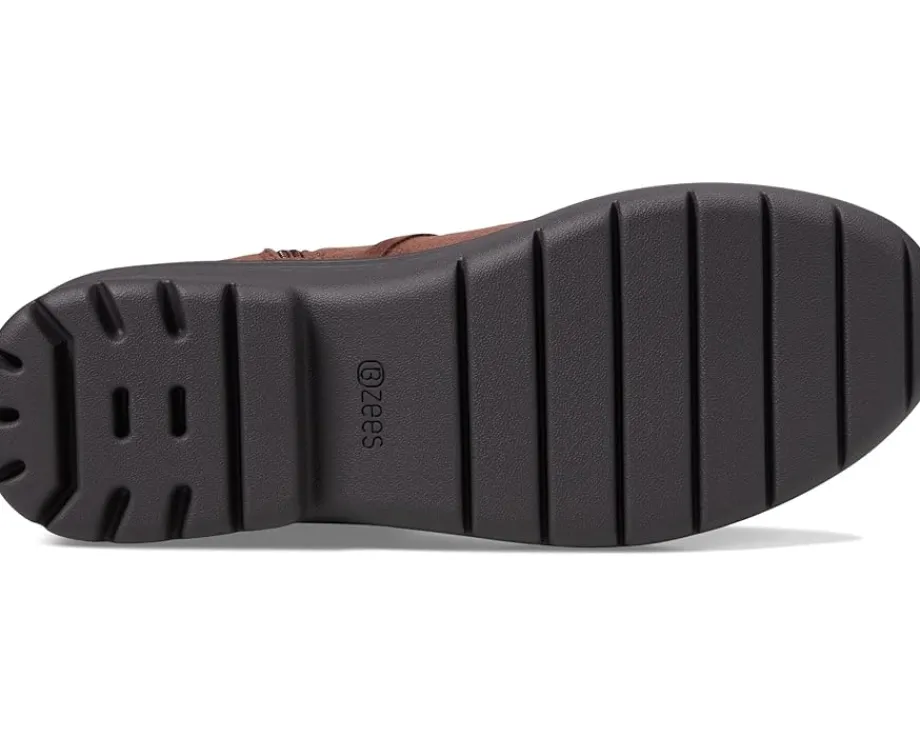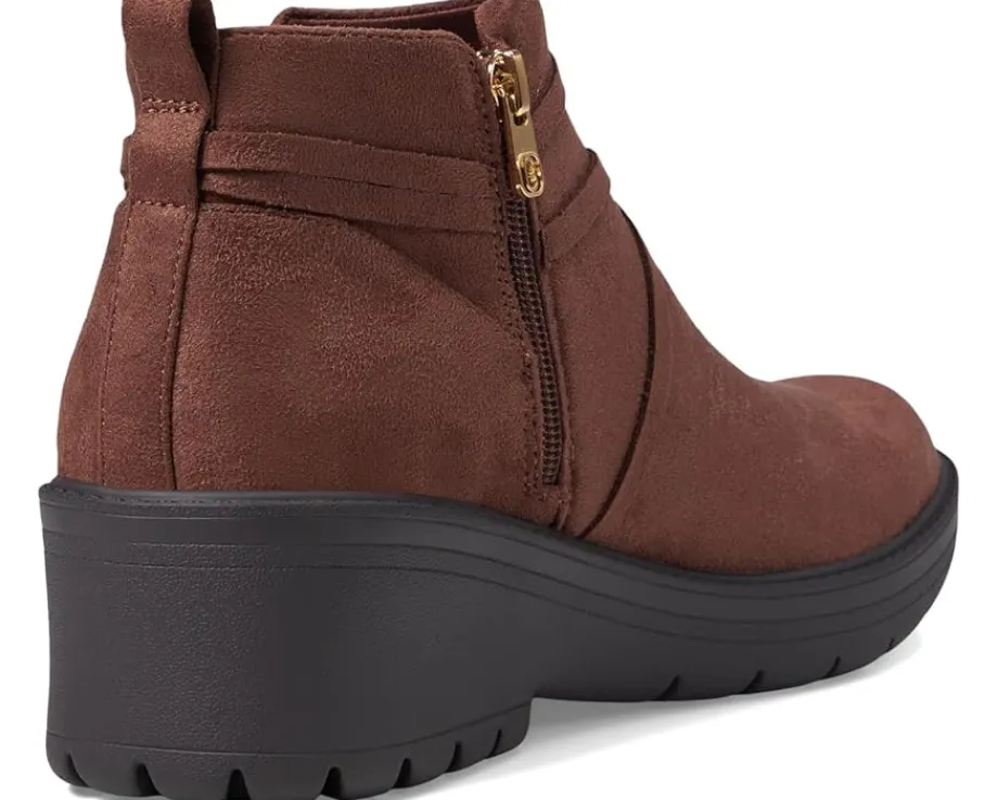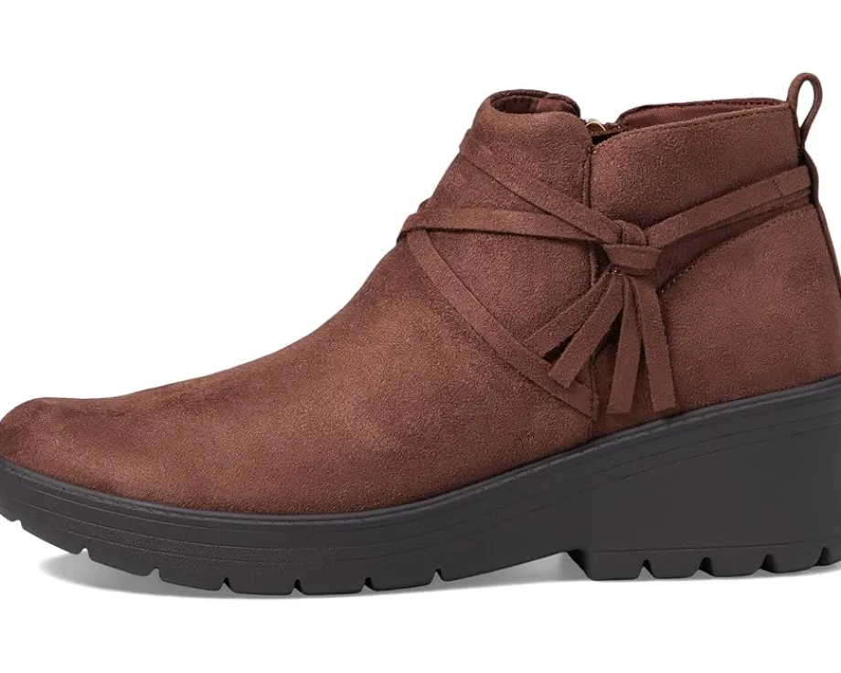 - Treat yourself to these crazy-comfy, machine-washable Bzees® Blaine ankle boots for women topped with sweet details. Ankle pull-tabs with a round toe. Side zipper and back pull tab. Strappy details. Bzees® cloud technology is designed so you’ll feel weightless, energized, and free. Dynamic stretch uppers fabrics move and groove with you. Free foam footbeds and crazy-cushy anatomical insoles are blow-your-mind comfy. Socush arch support. Odor control technology, wedge heel, and fabric lining makes it breathable.
