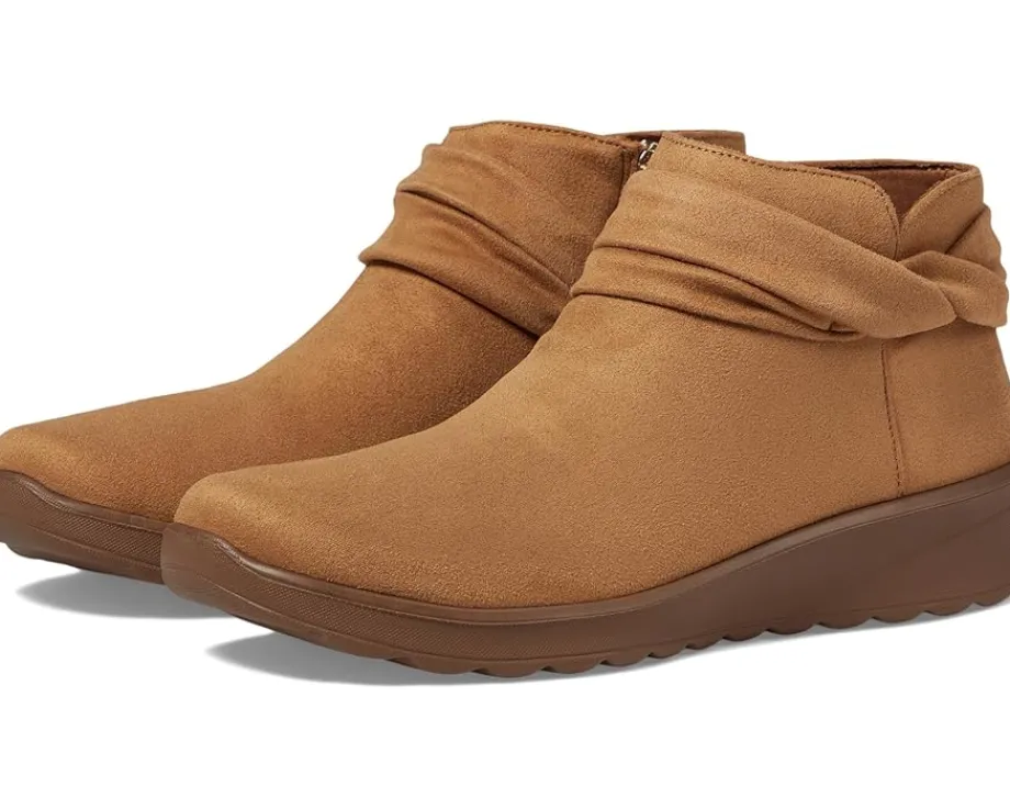 - Strut with confidence wearing the Bzees® Gemma, designed with perfection so you’ll feel weightless, energized and free. Crafted from stretch fabric upper with partially recycled linings and topcloth with a round toe, it features side zippered closure with braided detail, low heel, and a foam insole.