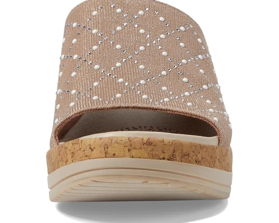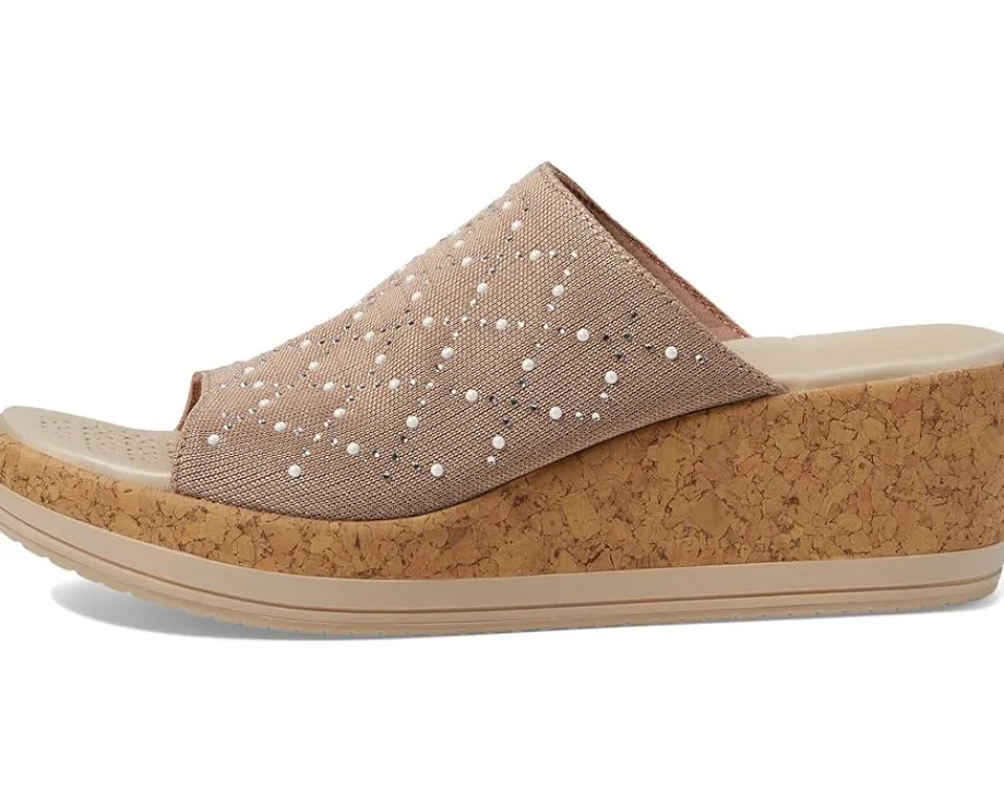 - Spark boldly wearing the Bzees® Royal Wedge Sandals featuring an abstract design on the vamp. The slip-on footwear has nylon upper construction with fabric lining and wedge heels for support.
