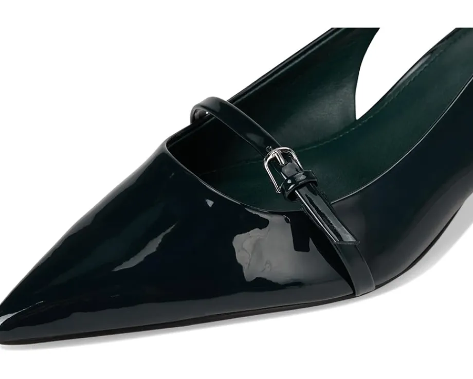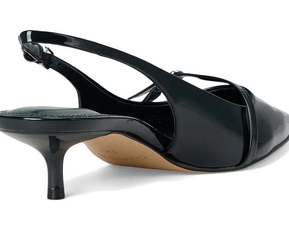 - Sleek sophistication meets modern glamor in the Calvin Klein® Simira. Designed for women who want polish with comfort, this dress pump blends timeless elegance with everyday wearability. Crafted with a smooth PU upper and a soft manmade lining, it ensures a luxe feel while staying lightweight. The adjustable slingback buckle strap provides a secure, personalized fit, while the pointed toe and chic kitten heel elevate your look with subtle confidence. A cushioned EVA outsole delivers all-day comfort without sacrificing style, making these heels perfect for workdays, nights out, or special occasions.