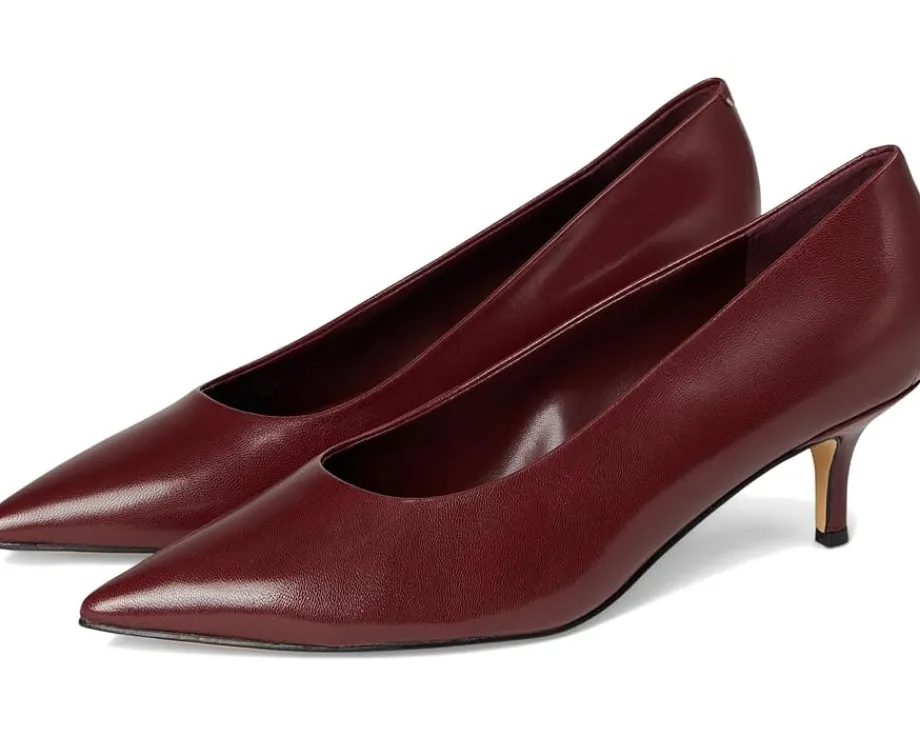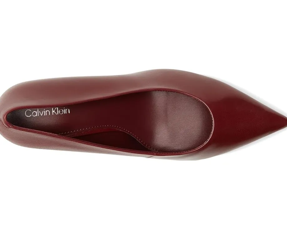 - The Calvin Klein® Voneta pumps redefine elegance with their sleek design and versatile appeal, making them the ultimate wardrobe staple. Crafted with a smooth leather upper and soft polyester lining, they promise both durability and comfort. The slip-on silhouette with a pointy toe delivers a chic, polished look, while the mid stiletto kitten heel adds just the right lift for all-day confidence. Designed with a lightweight EVA outsole, these pumps ensure effortless movement from boardroom to evening out.
