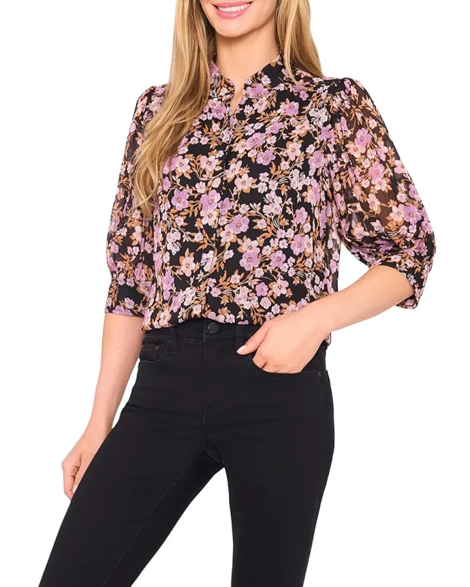- Sleek yet sophisticated, this blouse features subtle ruching on the sleeves and a hidden placket for a seamless look. Its versatile design effortlessly pairs with both tailored trousers and casual denim.