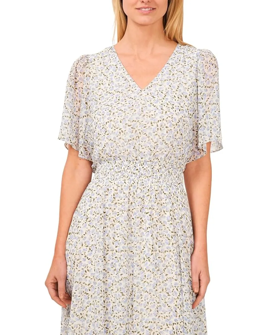 - Indulge in carefree chic with the CeCe™ Smocked Waist Flowy Sleeve Maxi Dress−a mesmerizing blend of comfort and elegance. Embrace the summer breeze in this handkerchief hem beauty, adorned with a smocked waist, V-neck, and ruffle embellishments. The A-line silhouette, short sleeves, and zipper closure ensure a perfect fit for your radiant style.