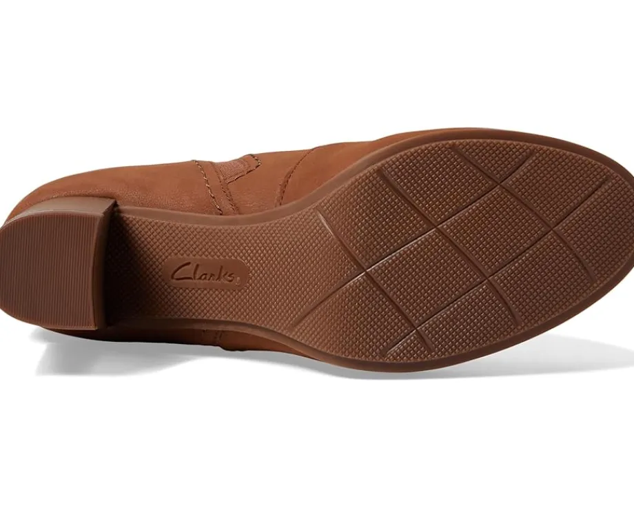 - Enhance your protection for cold days by wearing Clarks® Bayla Glow boots before stepping out. A fabric lining with a leather upper ensures maximum comfort. A foam insole provides comfortable cushioning. The boots have ankle shat with closed toe and zip closure. Stiletto heel with pull-on style makes the boots appealing.