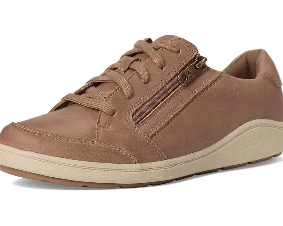 - A sporty evolution of Clarks® Collection Caroline family, Bryianne Bayla is prepped for laid-back everyday wear. Crafted from a soft leather upper, this simple yet timeless silhouette features a trendy, athletic-inspired TPR outsole design for ultimate underfoot traction and a plush Ultimate Comfort PU foam footbed for all-day support & ease. Laces give an authentic look and personalised fit, while the metal side zip combines with elastic gore panel to provide easy foot entry.