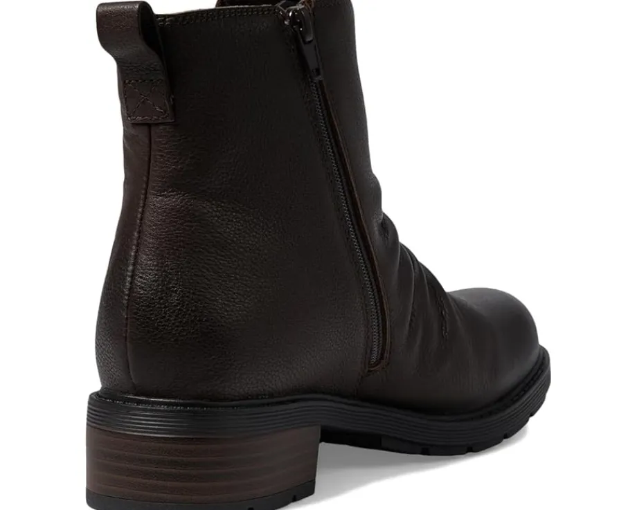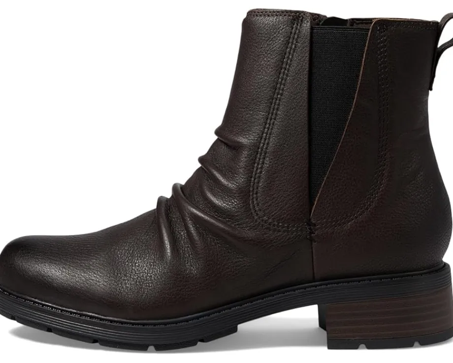 - Step out in style every day by wearing Clarks™ Hearth Rose boots. The leather upper with fabric lining makes it stylish from the outside and comfortable from the inside. The round-toe boots have a wrinkled effect for styling. The calf-high shaft, zip closure, and heel pull tabs make it super convenient to put on.