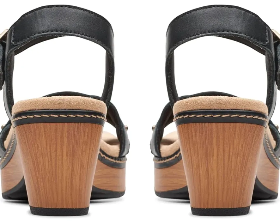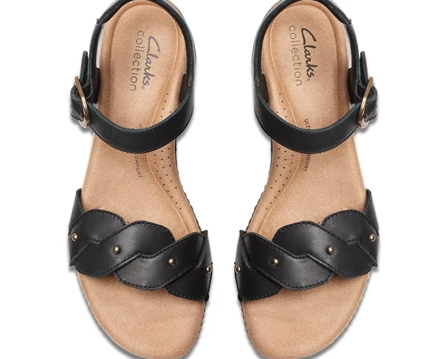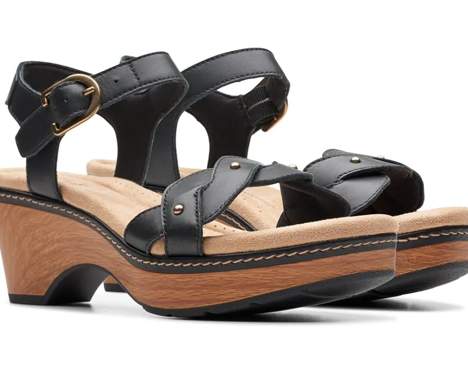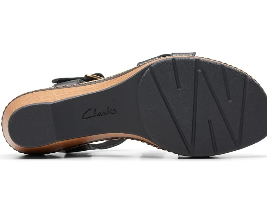 - Keep your feet free from abrasion wearing this soft and comfortable Clarks™ Seannah Way sandal. A leather upper, mesh lining, and rubber insole ensure breathability with cushioning. It has open toe, braided strappy vamp, slide-on style, and adjustable ankle strap with buckle closure. A wedge platform heel with notch provides superior traction to keep going.