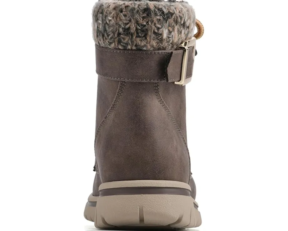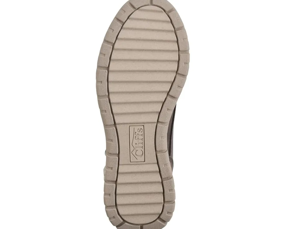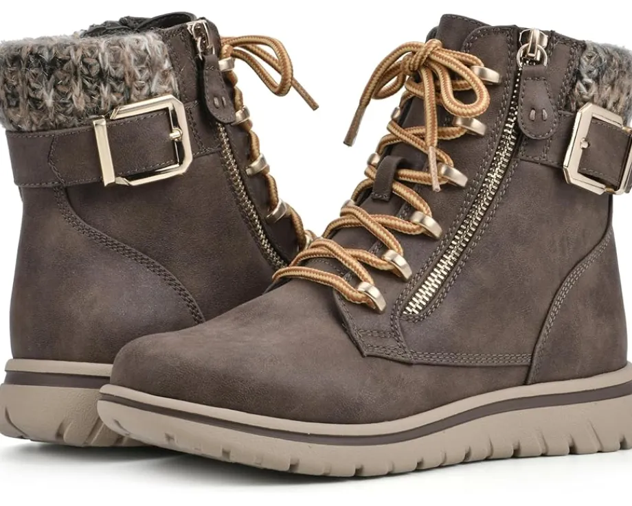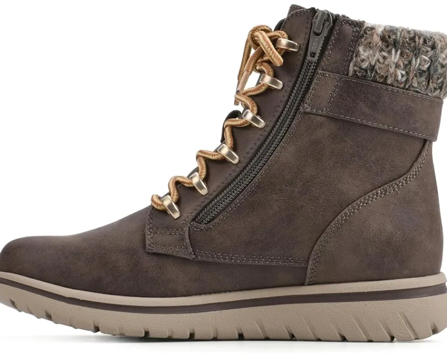 - Explore urbane streets wearing the fashionable Cliffs™ by White Mountain® Hearten Lace-Up Boots. This lightweight footwear features textile upper construction with buckle-accented ankle, zippered side closure, and a round toe silhouette.